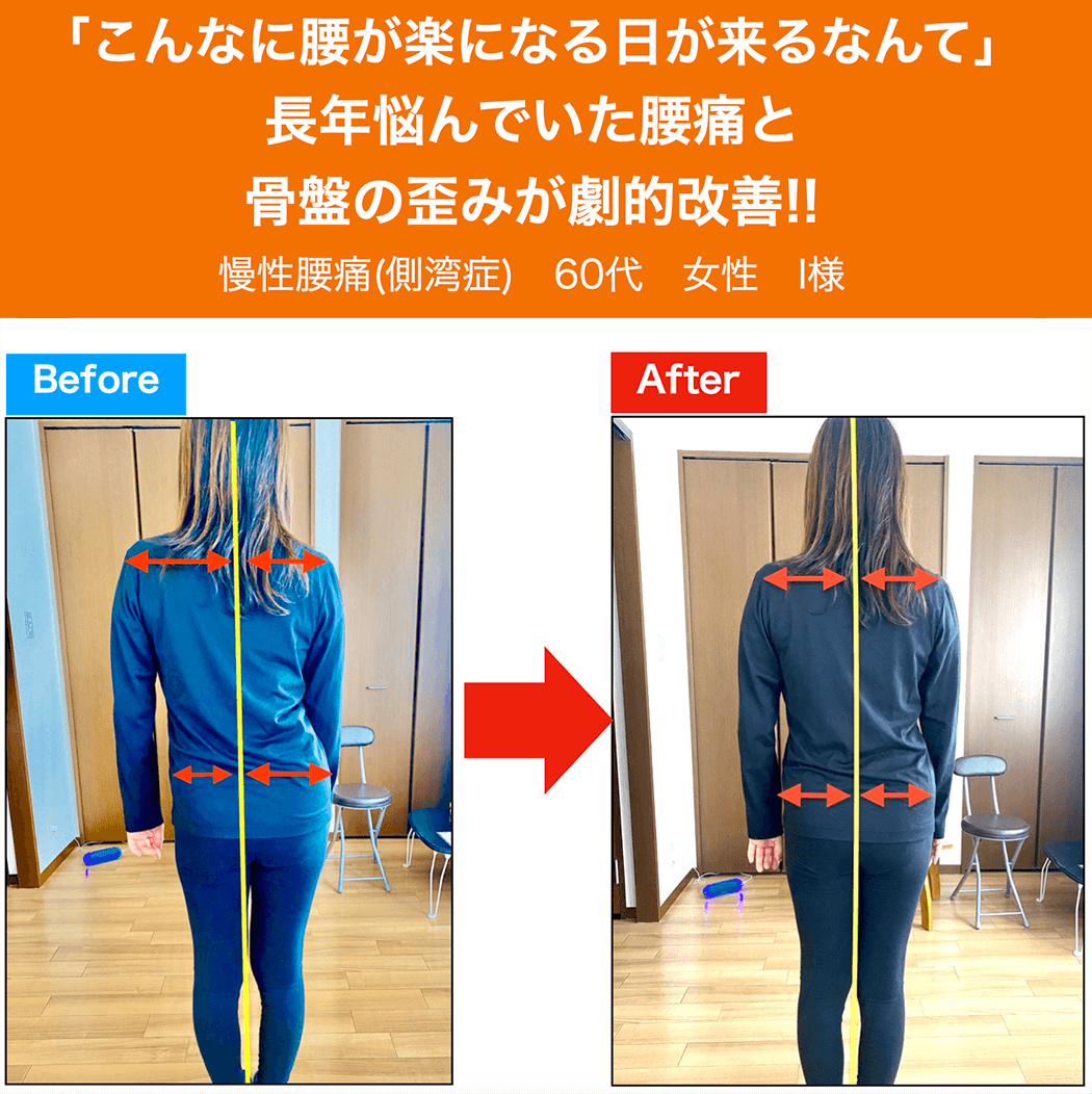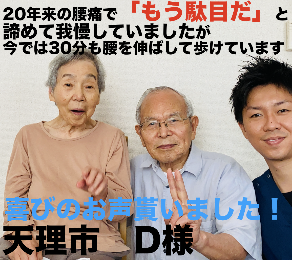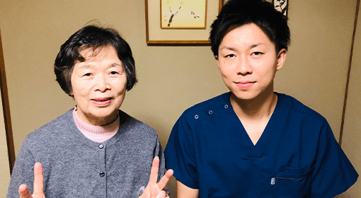 数回受けた時点で改善していて、段差一段も上がれない状態でしたけど上がれます。また、1万歩以上の散歩もできて運動もできている状態です。先生からほぐすだけじゃなくて運動もこの運動をやらないといけないですよって指導してくださって分かりやすかったですね。