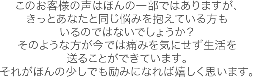 - 他の施術院では見放され、我慢するしかないと言われてしまった