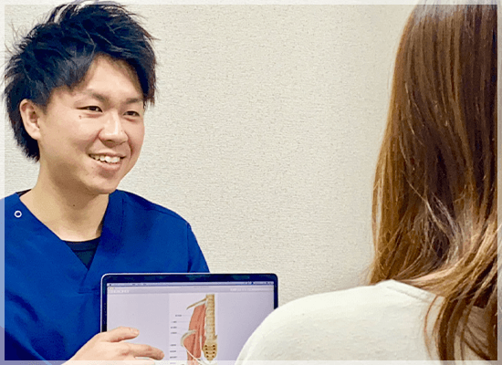 あなたが我慢している腰痛により、この先もずっと悩まれるのかと思うと、残念でなりません。私は誰よりも全力であなたに向き合い、腰痛を改善させる事をお約束致します。