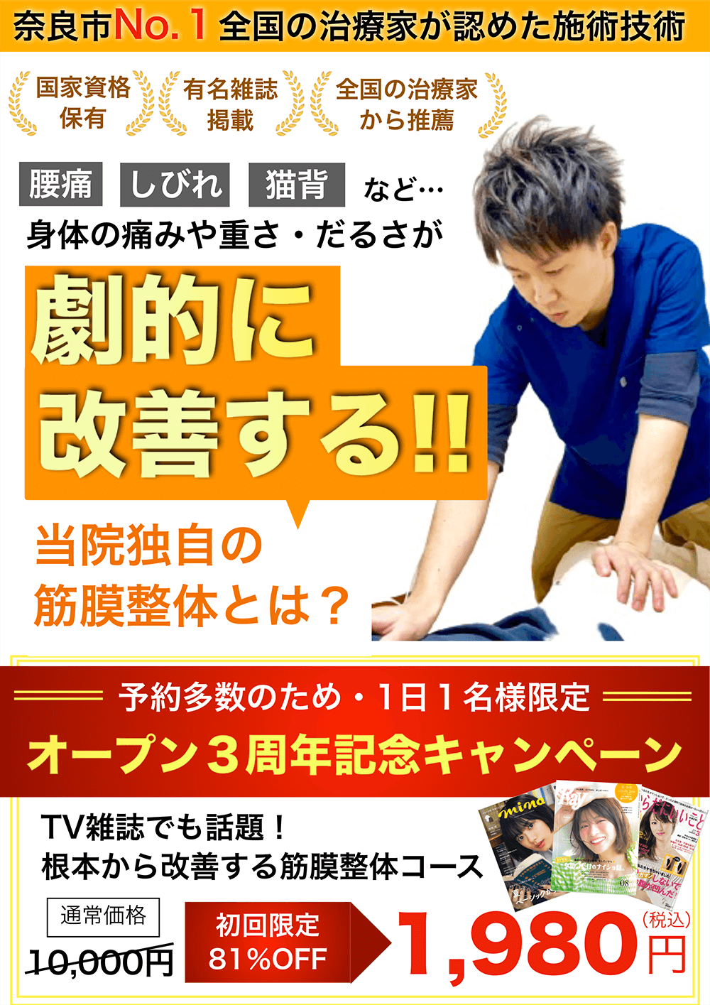 ※限定価格は初回のみです。来院2回目以降の施術費用は1回につき10,000円となります。